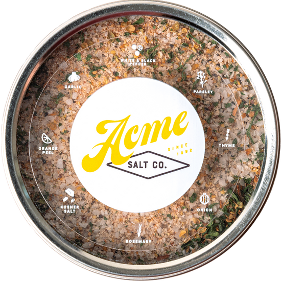 Chef Bob is the man behind the flavor of Acme Salt Co. On a journey to create his own story and style as a chef, he experimented with different salt mixes from 1989-1992, and then he landed on perfection. The first salt mix was born, Superior Salt Mix. Then came Smoky Maple. And from those moments forward, Acme Salt Co has been selling their signature mixes to chefs and at home cooks alike.